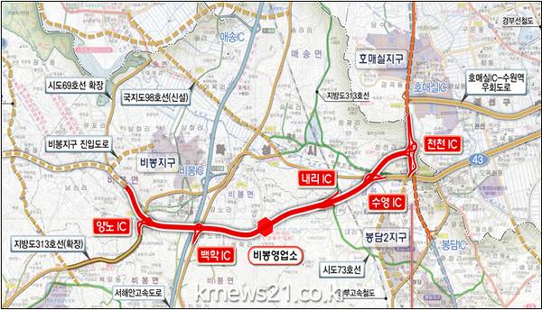 비봉 ~ 매송 간 고속도로는 2014년 3월 착공돼 비봉면 양노리에서 매송면 천천리까지 총연장 8.9km 왕복 4차선으로 건설됐다.