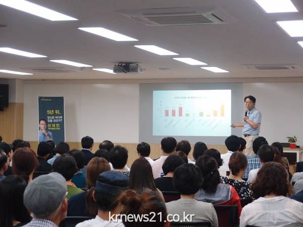 무더운 날씨임에도 불구하고, 우리나라 대표 경제전문가 선대인작가의 강연을 듣기위해 찾아온 150여 명의 시민들로 다목적실은 빈틈없이 시민의 열정으로 가득 찼다.