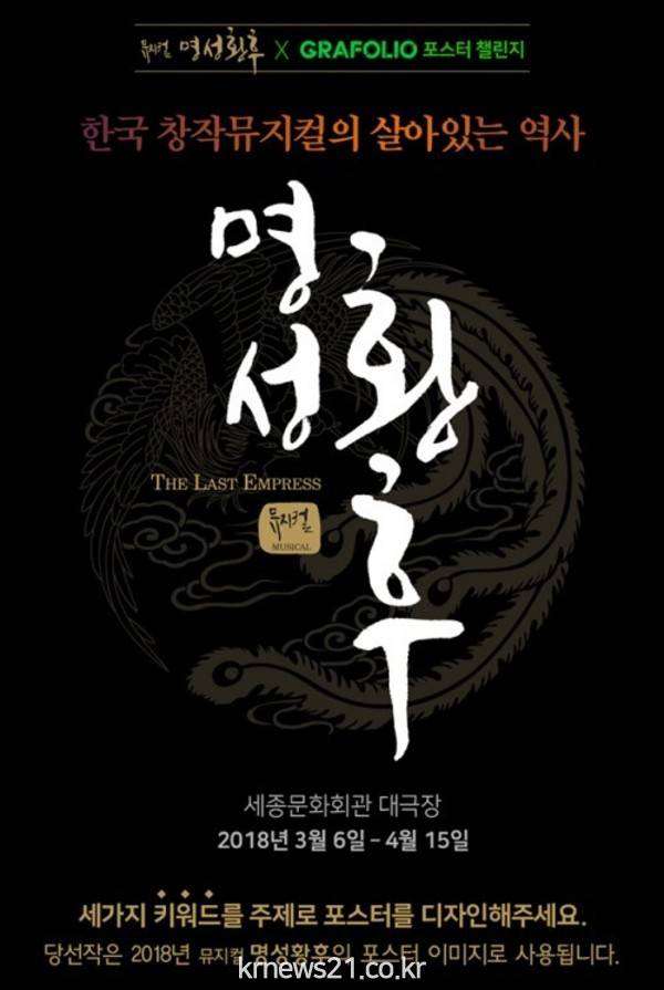 한국 창작뮤지컬의 대표주자 뮤지컬 <명성황후>가 2018년 3월 세종문화회관 대극장 공연을 앞두고 네이버 그라폴리오와 함께 포스터 디자인 챌린지를 개최한다.