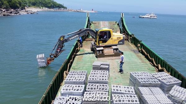 경기도해양수산자원연구소는 최근 충남 태안소재 양식장에서 생산된 어린해삼 4만 마리를 안산시 단원구 풍도 마을어장 내 해삼어초 2,700개에 투입, 정착시키는 작업을 완료했다고 7일 밝혔다.