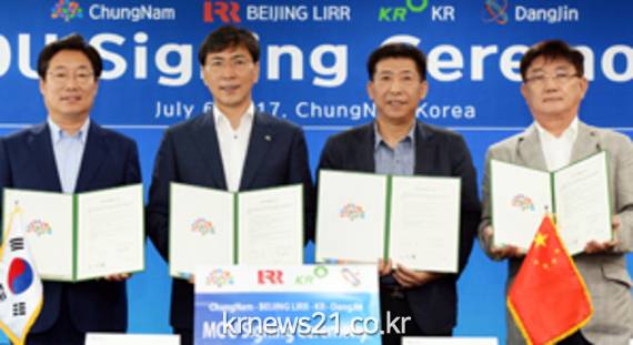 6일 도청 상황실에서 안희정 지사와 베이징리어(Beijing Lirr) 장도운 부총재, ㈜케이알 김대성 회장, 김홍장 당진시장이 참석한 가운데