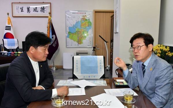 이재명 성남시장은 7월 10일 오전 시장실을 찾은 소병훈 경기 광주 갑 국회의원과 ‘성남~광주 간 지방도 338호선 도로 확·포장 공사비’ 확보 문제와 관련해 의견을 나눴다.