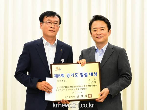 안산시(시장 제종길)가 ‘제6회 경기도 청렴대상’ 평가에서 우수상을 수상하면서 지난해에 이어 2년 연속 우수상을 받아 명실상부한 청렴 도시로 자리매김했다.