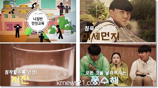 이 자료에는 미세먼지․지진․풍수해․대설한파․화재 등 5종의 재난상황에 대비한 행동요령을 담고 있는데, 최근 도교육청에서 제작․배포한 ‘재난대비 학교현장 행동매뉴얼’에 담긴 내용을 영상으로 제작한 것이다.