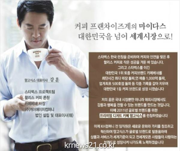 할리스커피·카페베네·망고식스 등 디저트매장 브랜드를 잇달아 성공시킨 강훈 KH컴퍼니 대표가 25일 자택에서 숨진 채 발견됐다.