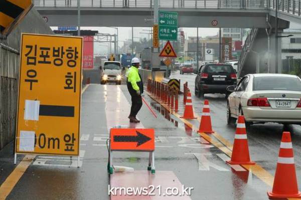 이 도로 운영사인 인천김포고속도로㈜는 23일 오전부터 직원 30여 명과 빗물을 빨아들일 수 있는 살수차 16대 등 각종 장비를 투입했지만, 아직도 복구 작업을 끝내지 못했다.