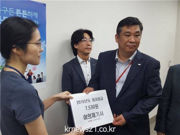 소상공인연합회 최승재 회장을 비롯한 소상공인 대표단은 이날 세종시 고용노동부를 찾아 16.4%가 인상돼 7530원으로 결정된 2018년도 최저임금 결정에 대해 이의를 제기했다.