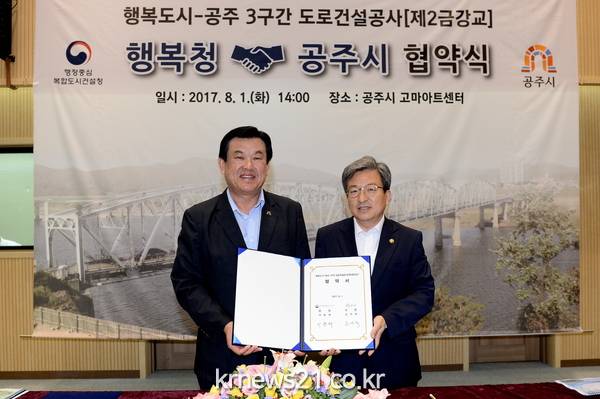이날 협약식에서 양 기관은 ‘효율적 사업수행 및 조기준공을 위한 업무분담(행복청 : 설계·시공, 공주시 : 인허가·유지관리)’,