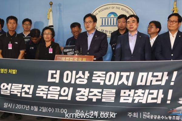 우 원내대표는 "정권을 바꾸고 촛불을 든 것은 이같은 노동현실을 바꾸겠다는 것으로 안타까운 일이 다시 발생하지 않도록 집권당 원내대표로서 책임을 다하겠다"고 했다.
