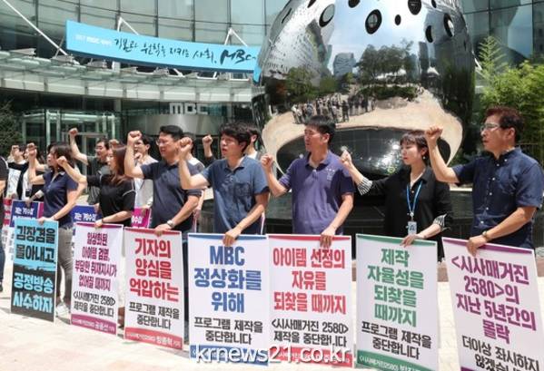 <문화방송>(MBC)이 회사의 불합리한 보도 통제에 문제를 제기하며 제작거부에 나선 시사제작국 소속 기자·피디를 무더기로 대기발령했다.