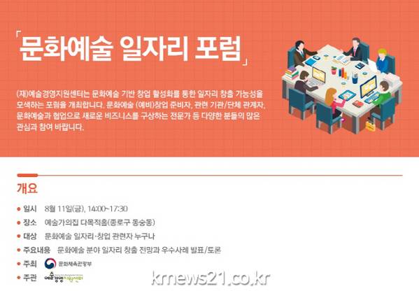 문화예술을 기반으로 한 창업으로 새로운 일자리 창출 가능성을 모색하는 포럼이 열린다. 문화체육관광부와 예술경영지원센터는 11일 서울 종로구 동숭동 대학로 예술가의 집에서 ‘문화예술 일자리 포럼’을 개최한다.