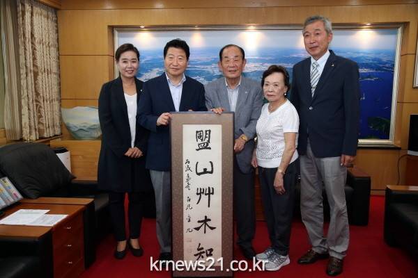 안상수 시장은 “지역 근현대사에 의미 있는 백범 김구 선생의 盟山草木知(맹산초목지) 친필 유묵 1점을 아무런 조건 없이 기증해준 김청정 씨께 감사드린다”며 고마움을 표시한 후, 기증증서와 감사패를 전달했다.