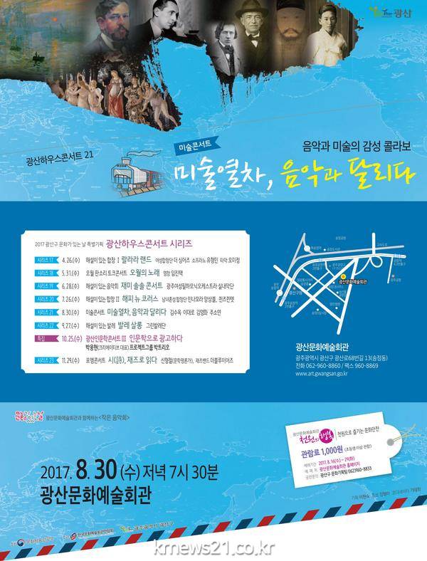 광주 광산구(구청장 민형배)는 동·서양 미술과 음악의 매력을 한 자리에서 음미하는 ‘미술열차, 음악과 달리다’를 30일 저녁7시 30분 광산문화예술회관에서 개최한다.