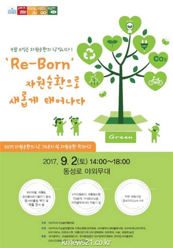 자원순환 사회로의 전환에 대한 시민 공감대 형성과 녹색소비문화 정착의 계기를 마련하기 위한 '2017 자원순환 한마당' 행사가 9월2일(토) 오후 2시 동성로 야외무대 앞 일대에서 개최된다.