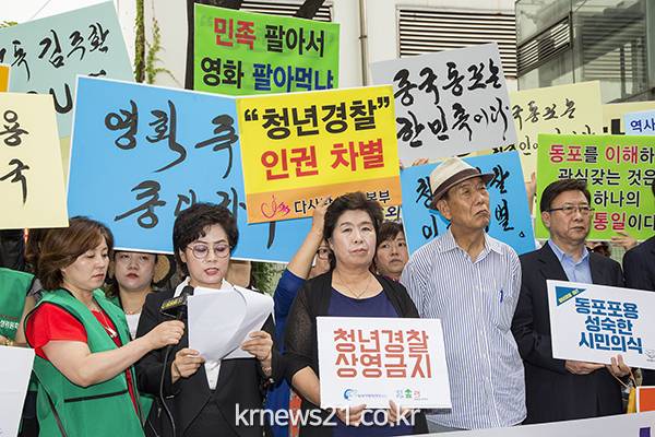 관객 수 500만을 넘어서 흥행몰이 중인 '청년경찰'에는 서울 대림동을 중심으로 활동하는 중국 동포 폭력조직의 이야기가 나온다. 재중동포 단체들은 해당 영화의 내용이 동포를 범죄자로 낙인찍고 있다며 영화 제작사와 배급사 등을 상대로 상영금지 가처분 신청을 내고 강력하게 항의 중이다.