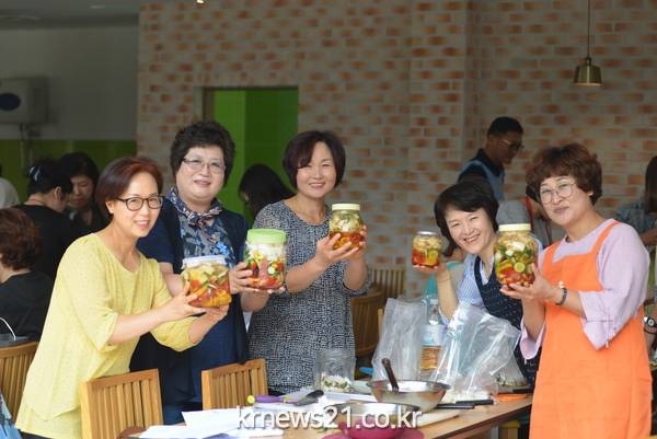시민 80여 명이 함께 한 이날 주제는 ‘광산 더하기시민농부 절임음식 체험.’ 참가자들은 오복장아찌와 새송이버섯 장아찌를 김금희 광주 선우학교 영양교사의 진행으로 만들었다.