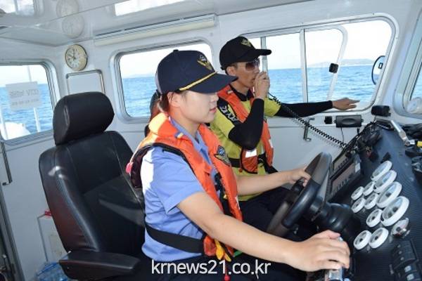 신 주무관은 목포해양대 항해과를 졸업하고 평소 해양환경에 대한 관심으로 20대 1 가량의 높은 경쟁률을 뚫고 지난 5월 선발됐으며 여성적이고 유연한 손놀림으로 항해계기 등을 작동 조종사로써 뛰어난 실력을 돋보이고 있다.