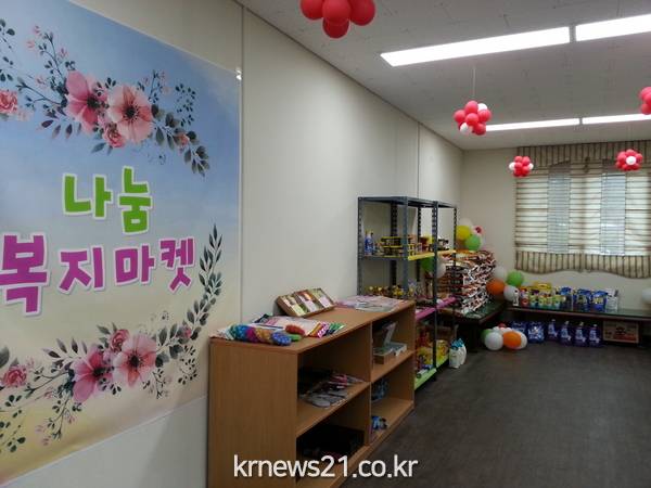 송악읍사무소 내 송리 쉼터에 위치한 나눔 복지마켓은 주로 이웃돕기 물품이 쌀로 중복 지급되는 것을 막고