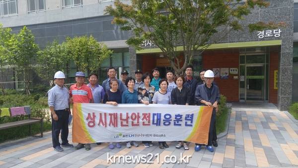 광주남구 효천LH천년나무 6단지 임대아파트(소장 이혜련)는 재난안전사고에 대한 선제적 대처능력 향상을 위하여 매 분기마다 직원들과 입주민 대상으로 재난안전 대응훈련을 실시하고 있다.