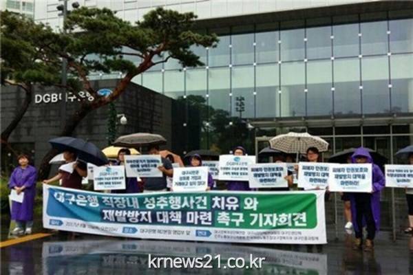 “성폭력 사건에 비자금까지 ‘대구의 적폐’ 대구은행 문제 해결을 위한 시민활동‘을 펼친다며 대구은행을 압박했다.