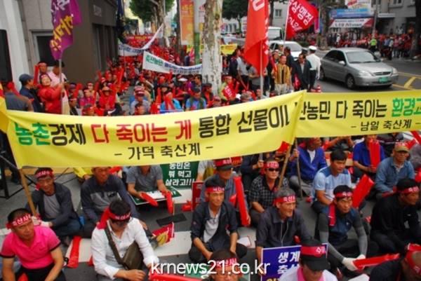 이들은 이날 청주시청 정문 앞에서 축산인 총궐기대회를 열어 "청주시가 조례를 개정해 환경부 권고안보다 10배 이상 강하게 축사 제한거리를 조정했다"며 이같이 요구했다.