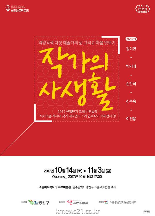 소촌아트팩토리는 14일부터 ‘럭키소촌 차세대 작가 레지던스’ 1기 입주 작가 기획전시 ‘작가의 사생활’을 연다. 회화·벽화·조소·설치미술 등에서 활약하는 입주 작가 5명의 작품들을 소촌아트팩토리 큐브미술관 내·외부에서 감상할 수 있다.