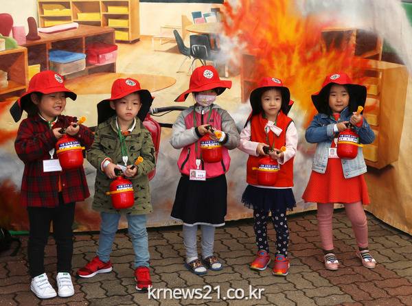 지난 13일과 14일 이틀 동안 당진실내체육관에서 미취학 아동과 초등학생들을 대상으로 열린 ‘2017 찾아가는 어린이 안전체험교실’에서 어린이들이 소화기 사용법을 배우고 있다.