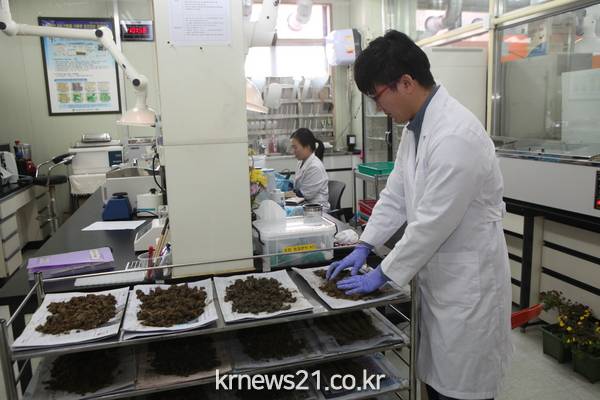 검사는 유기물과 유효인산, 치환성칼륨 성분 등을 분석해