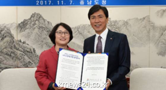 충남도가 양성평등 문화 확산을 위해 한국양성평등교육진흥원과 손을 맞잡았다.
