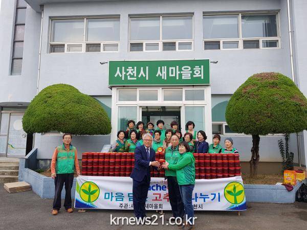 경남 사천시새마을부녀회(회장 조영숙)는 지난 7일 오후 3시 전 읍면동 부녀회장이 참여한 가운데 사천시새마을회관에서 사천시의 후원으로 고추장600통(1.2kg)을 담아서 ‘마음 담은 고추장’나누기 행사를 개최했다.