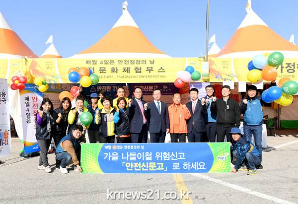 파주시는 축제가 시작되는 24일부터 안전문화 홍보부스를 운영하며 안전점검의 날 및 안전신문고 홍보 풍선, 지진대비 행동요령이 담긴 생활안전가이드 등을 나눠주며 안전의식 개선을 위한 홍보활동을 할 예정이다.