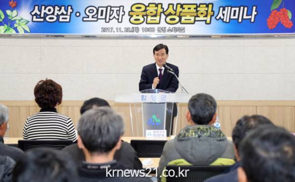 이날 세미나는 함양의 대표 농·특산물인 산양삼과 오미자의 융합 항노화 상품 개발과 유통 판매를 통해 새로운 패러다임의 건강식품을 개발해 군민소득 3만불 시대의 초석을 다지기 위한 자리였다.