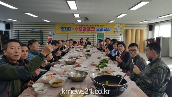 동주민센터에서 개최한 행사에는 선주민과 이주민 30여 명이 참가했다. 참가자들은 음식 재료로 오색 주먹밥과 잡채를 만들어 나눴다.