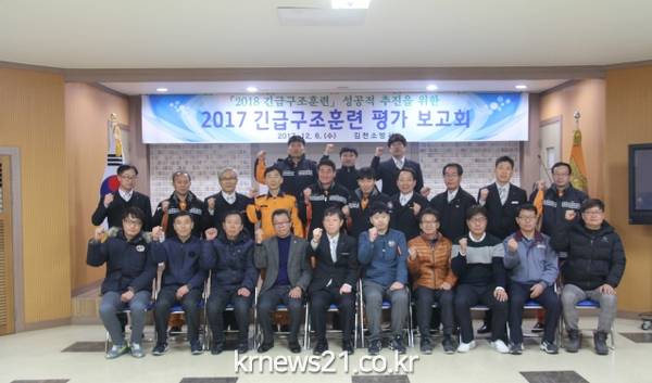 김천소방서(서장 백남명)는 6일 김천소방서 3층 대회의실에서 2018년 긴급구조훈련 성공적 추진을 위한 2017년 긴급구조훈련 평가보고회를 실시했다.