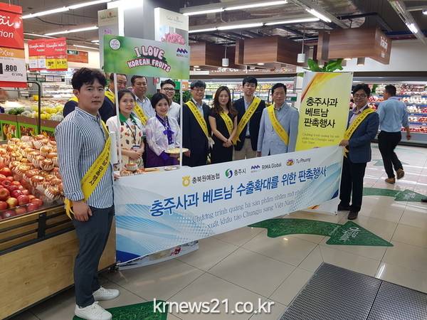 시와 충북원협은 지난달 24일 2017년산 후지사과가 첫 수출을 시작함에 따라 치열해진 경쟁구도 아래 충주사과의 인지도와 이미지를 높여 대만시장 사과 수출을 확대하기 위해이번 판촉전을 마련했다.