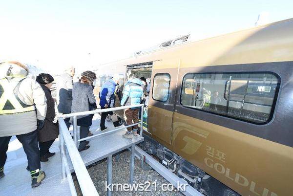 내년 11월 개통을 앞두고 있는 김포도시철도 ‘골드라인’ 전구간 시운전 행사가 열렸다.