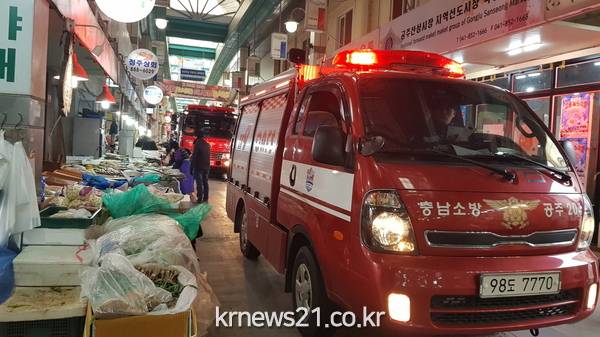 이번 훈련은 화재, 구조, 구급 발생 시 소방차의 신속한 현장 도착을 위해 긴급차량에 대한 양보와 소방 출동로의 중요성을 알리기 위해 실시했으며, 소방차량2대와 공주시청 및 공주소방서, 의용소방대, 공주산성시장 상인회 등 30여명이 참여했다.