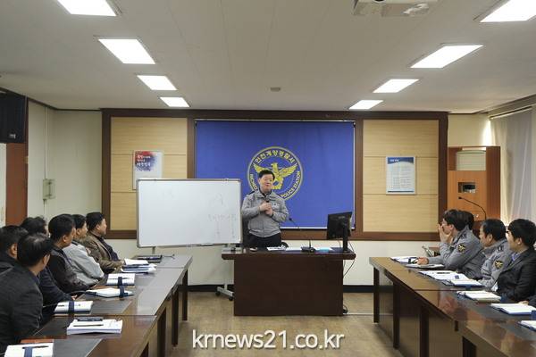 (정지용 계양경찰서장이 중간관리자들과 25일 워크숍에서 강의를 실시하고있다)