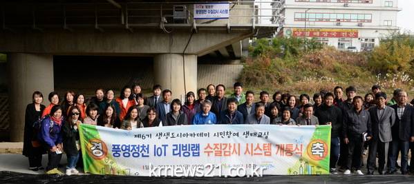 ‘풍영정천 IoT리빙랩’은 수질오염 사고를 방지하기 위해 제6기 생생도시 아카데미 수강 주민들의 아이디어를 구현한 것. 수강 주민들은 지난해 9월부터 석 달 동안 풍영정천 살리기를 주제로 학습했다. 아름다운공동체 광주시민센터가 주민들의 ‘풍영정천 IoT리빙랩’ 구현을 도왔다.