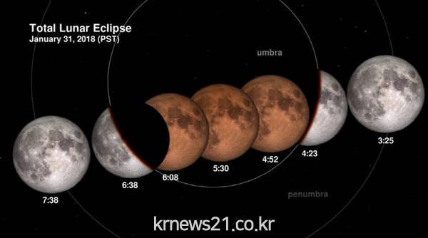 이번 개기월식은 특히 달이 크게 보이는 슈퍼문과 한달에 두번째 뜨는 보름달 블루문, 달이 붉게 변하는 블러드문 현상이 함께 나타날 예정이다.