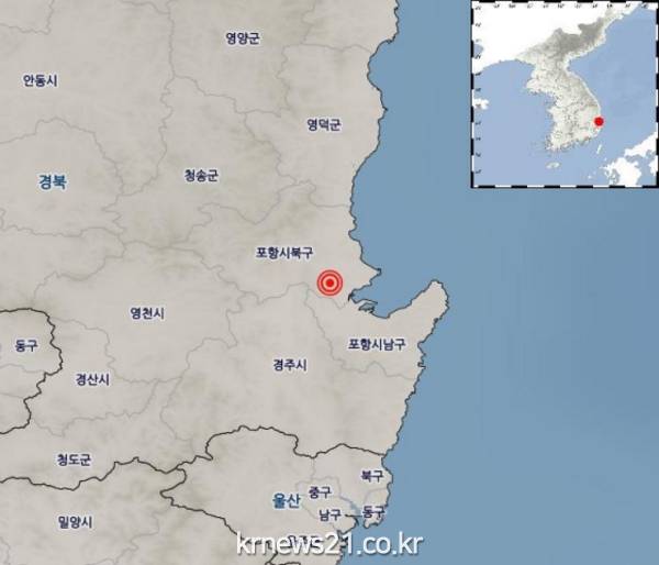 앞서 지난 4일에는 오후 3시43분쯤 경북 포항시 북구 북쪽 8㎞ 지역에서 규모 2.1의 지진과, 오후 10시20분쯤 경북 포항시 북구 서북서쪽 5㎞ 지역에서 규모 2.3의 지진이 발생했다. 지난 2일과 3일에도 인근지역에서 각각 규모 2.9와 2.0의 여진이 일어난 바 있다.