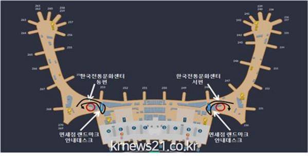 한국전통문화센터(이하 센터)는 지난달 18일에 문을 연 인천국제공항 제2터미널의 출국장 3층 양쪽 편의공간에 있다. 동관은 ‘배려와 소통의 문자, 한글’을, 서관은 ‘한국 장신공예(裝身工藝)의 멋과 향기’를 주제로 관광객들이 우리 전통문화를 오롯이 체험하며 공감할 수 있도록 꾸며졌다.