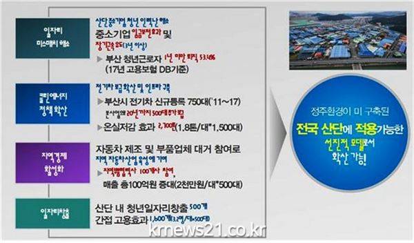 부산의 동-서간 정주여건 격차 등으로 발생하는 공간 일자리미스매치 극복을 위한 이 지원사업은 부산시가 처음 기획하고, 환경부의 ‘전기자동차 보급 및 충전인프라 구축사업’과 고용노동부 ‘지역혁신프로젝트사업’의 국비를 지원받아 추진하는 것으로, 지난해 12월 행정안전부의 정부공공부문 일자리창출 우수사례 발표대회에서 ‘최우수상’ 수상을 통해 이미 전국적으로 소개가 됐다.