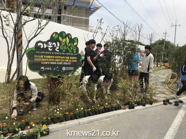 (뉴스21/장병기기자)=광산구는 학교 안 공터 약 500㎡ 부지에 ‘가온길’을 조성했다. 사전에 학생들의 의견을 모아 심고 싶은 나무를 선정하고, 산책을 즐길 동선을 설계에 반영했다.