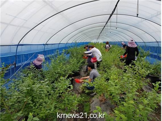 (전북/뉴스21)김문기기자=고창군 농업진흥과 직원 20여명은 바쁜 농번기를 맞아 흥덕면 블루베리 농가에서 농촌일손돕기 작업을 지원했다고 12일 밝혔다.