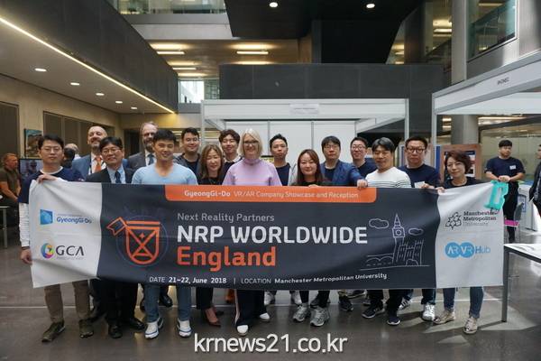 영국 맨체스터에서는 맨체스터 메트로 폴리탄 대학에서 열린 ‘제4회 국제 AR/VR 컨퍼런스’(the 4th international ARVR Conference)’ 에서 쇼 케이스 행사를 열었다. 개척단에 참가한 8개사의 프리젠테이션과 전시회로 구성된 쇼 케이스에는 영국의 디지털 문화 디미어 체육부 마고 제임스(Margot James) 차관 등이 참석하여 경기도의 VR/AR 산업지원에 많은 관심을 보였다. 또, 영국의 대표 VR기업 이온 리얼리티(Eon Reality)사와 경기도 헬로VR사가 AR교육책에 별도 판매 협의를 진행하기도 했다.