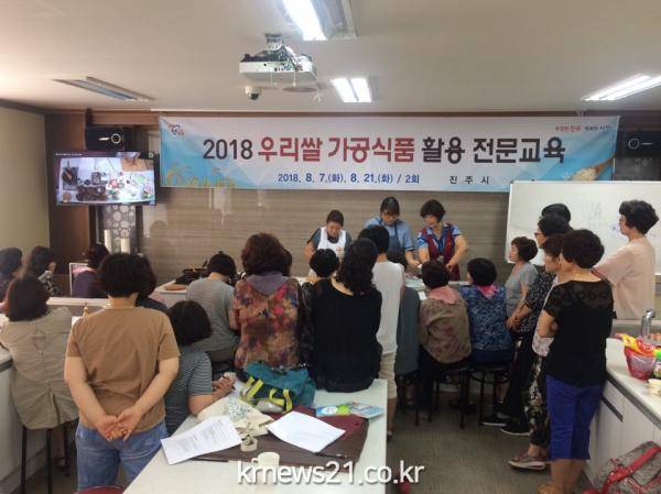 ▲ (사진=진주시청)진주시는 내동면 진주향교음식문화연구원에서 우리 쌀에 대한 올바른 이해와 쌀 소비를 촉진시키고 차세대 교육 역량을 강화하기 위해 학교급식 조리사 30명을 대상으로 우리쌀 가공식품 활용 전문교육을 실시했다.