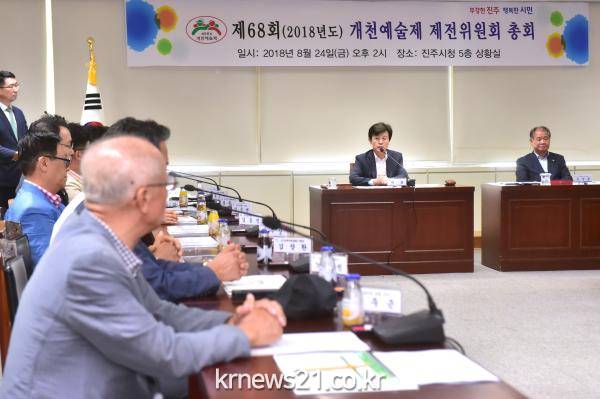 진주시와 한국예총진주지회(지회장 주강홍)는 지난 24일 오후 2시 진주시청 (5층 상황실)에서 조규일 진주시장과 시의원, 유관기관, 문화예술단체장 등 제전위원 20명이 참석한 가운데‘제68회 개천예술제 제전위원회총회’를 개최했다고 밝혔다.