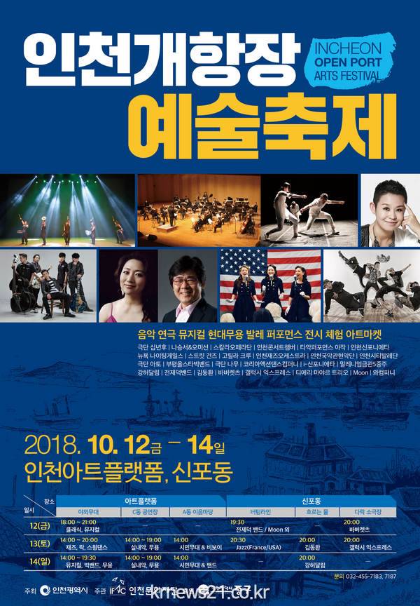 ▲ (사진=인천문화재단)(재)인천문화재단(대표이사 최진용)에서 다음 달 10월 12일(금)~14일(일) 3일간 인듀천아트플랫폼과 신포동 일대의 문화공간을 중심으로 2018 인천개항장예술축제를 개최한다. 본 축제는 올해 처음 개최되는 축제로 지역의 다양한 예술단체를 중심으로 개최되는 축제이다. 클래식, 재즈, 포크, 락, 합창 등 다양한 음악장르와 무용, 뮤지컬, 퍼포먼스, 전통 등의 공연예술프로그램이 축제를 뼈대를 이루고 있다. 인천개항장예술축제는 지역 예술가들의 최근 활동과 작품이 소개되는 장이며 예술성뿐만 아니라 대중성도 함께 가미된 공연을 보여준다. 어린아이부터 청소년, 어른 등 남녀노소뿐만 아니라 국적이 다른 외국인들도 즐길 수 있는 프로그램들로 알차게 구성되어 있다.