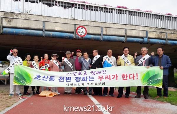 (전북/뉴스21)김문기기자=정읍시 대한노인회 초산동분회(회장 박창규, 이하 초산동분회)는 지난 9월 28일 18명의 경로당 회장들이 모두 참여한 가운데 정읍천변 정화활동을 실시했다.